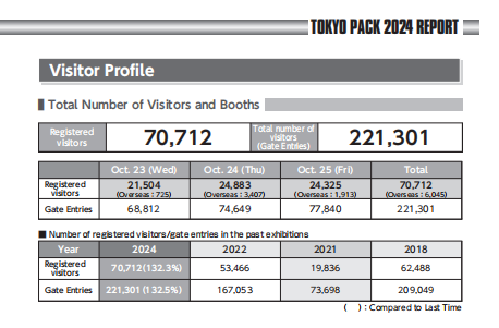 2026年日本东京包装展览会(Tokyo Pack),展会时间:2026年10月14日~10月16日,展会地点:日本-东京-3-21-1 Ariake, Koto-ku, Tokyo 135-0063, Japan-东京有明国际会展中心,主办方:日本包装技术协会主办,举办周期:两年一届,展会面积:40000平米,参展观众:221000人,参展商数量及参展品牌达到725家。